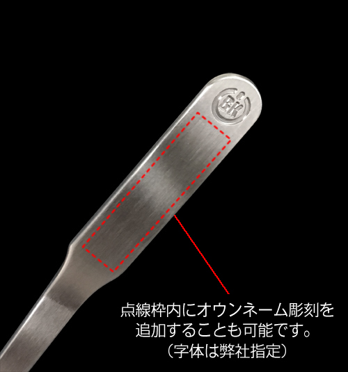 点線枠内にオウンネーム彫刻を追加することも可能です。(字体は弊社指定)